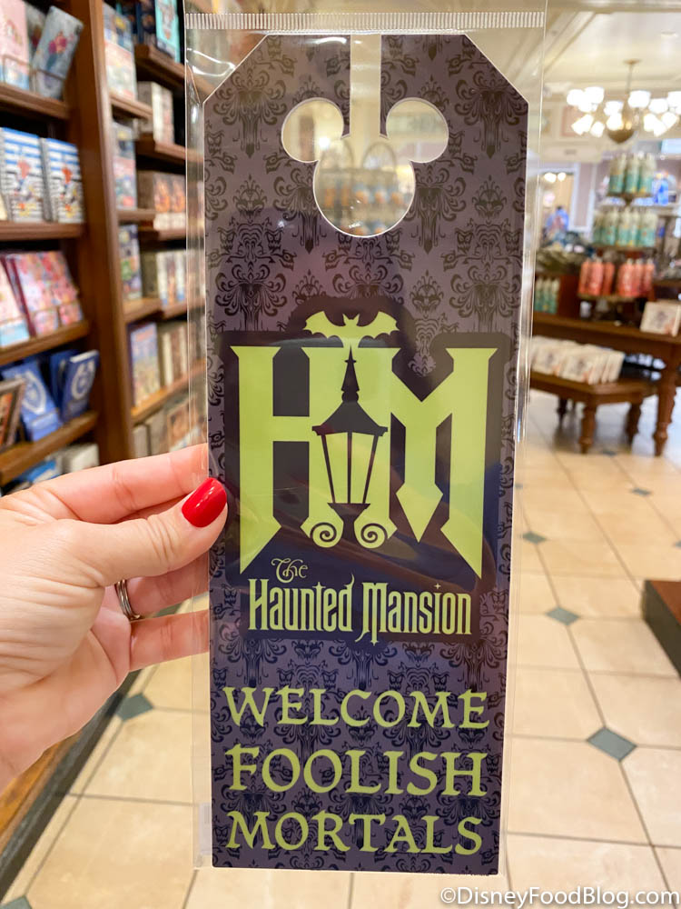We popped into the Emporium and found the corrected Haunted Mansion door hanger! Remember when this poor guy said “Welcome Folish Mortals?”