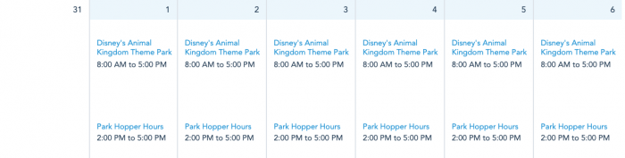 Finally, for the week of January 31st, Disney’s Animal Kingdom will be open next week from 8AM-5PM daily.