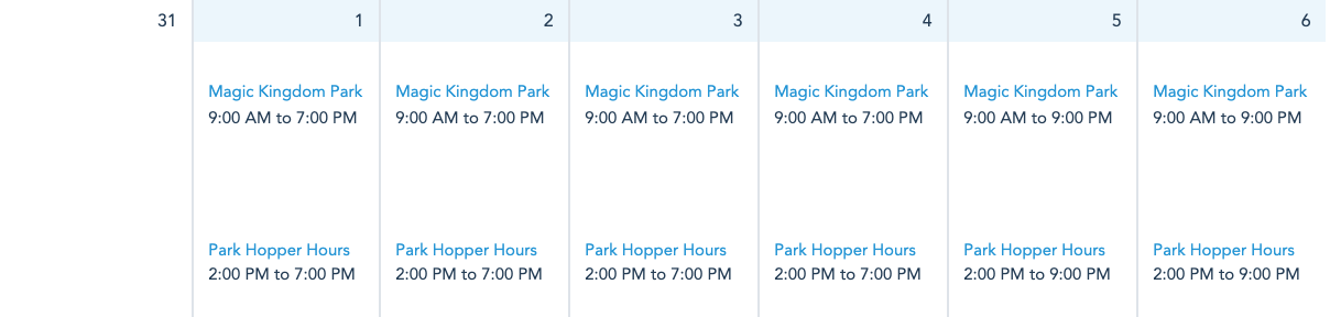 Magic Kingdom is the only park next week with park hours that vary between the weekdays and weekend. If you’re still planning your week, keep that in mind! The other three parks will have the same hours no matter which day you visit, but you’ll get a couple of extra hours in Magic Kingdom if you go there on the weekend.