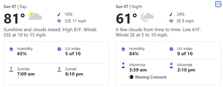Here, we’re looking at a 78-degree high and a 59-degree low.