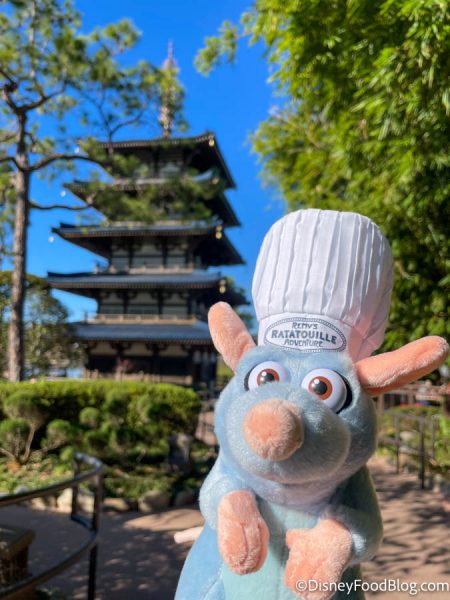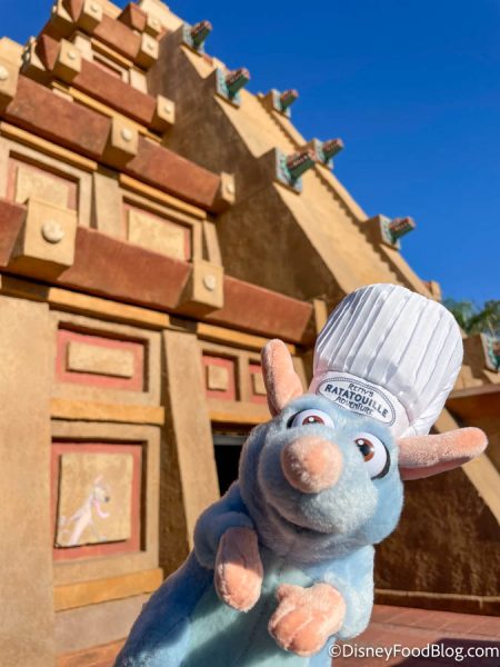 We’re now able to explore part of the France Pavilion’s expansion, and today, a whole bunch of merchandise for the upcoming attraction was released! Within that collection was a Remy plush that can speak both English and French (he’s very cultured). Well, we decided to bring Remy around to explore his new home, the World Showcase. Check out our adventures!