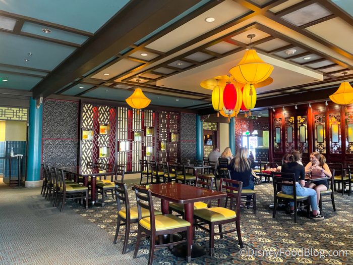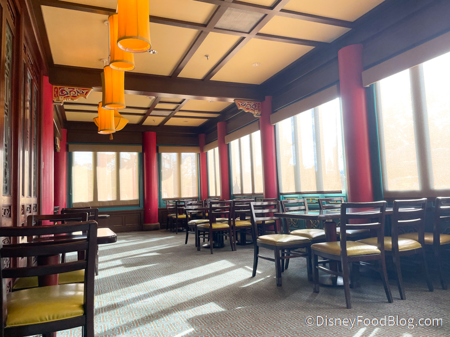 The additional seating for Lotus Blossom Cafe is inside Nine Dragons’ dining room. We’ve seen something like this before over at Disney’s Caribbean Beach Resort and in EPCOT’s France pavilion.