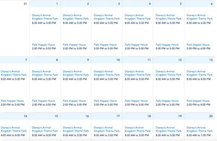 After the 20th, Animal Kingdom goes back to its previous pattern of hours.