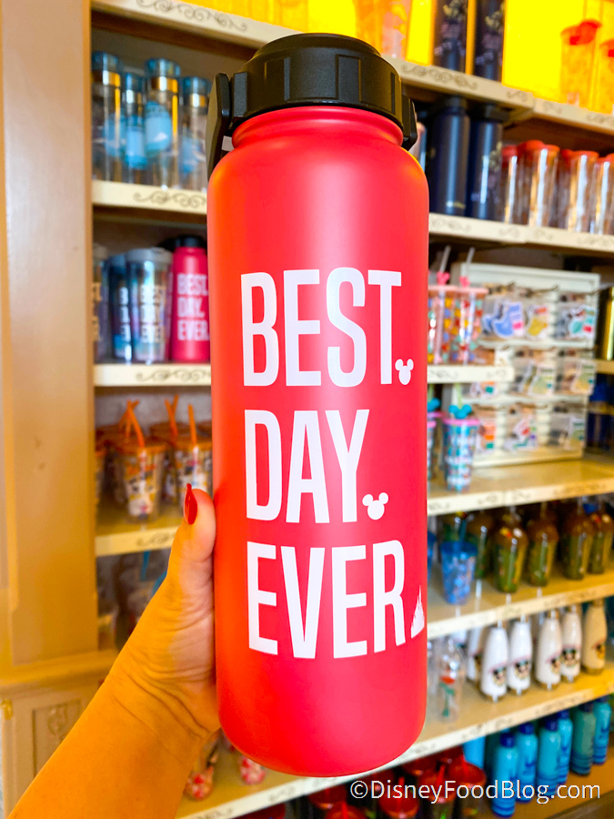 It’s usually the “Best Day Ever” when you’re at Disney World, and now there’s a Water Bottle that says just that! This red bottle is $34.99. We’ve seen this Best Day Ever design on several other bottles and tumblers, but now it’s available in red! We love the little Mickey ears as punctuation.