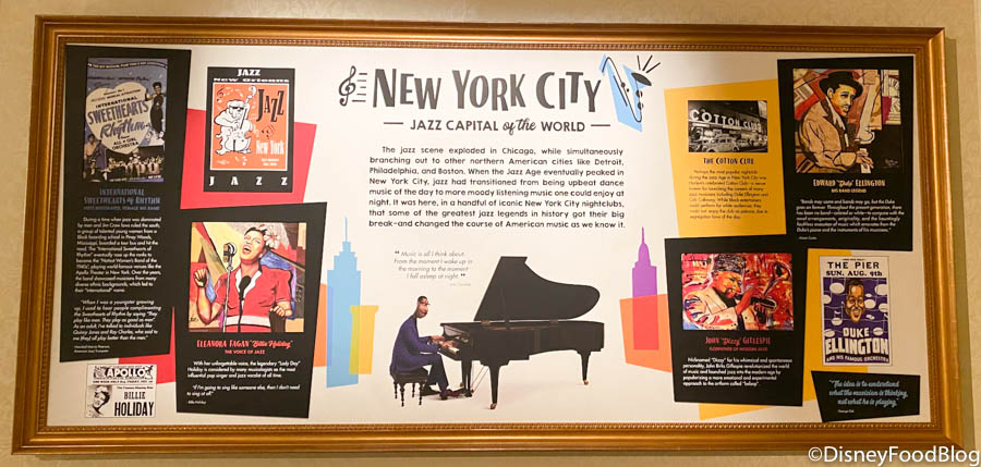 Each of the five jazz hubs has its own board on the wall that speaks to their respective places in jazz history, plus some of the famous musicians that made their names bringing jazz to these cities!