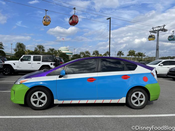 One of the coolest things we found on our trip to Hollywood Studios was actually OUTSIDE of the park! In the parking lot, we spotted this incredible Buzz Lightyear Car!