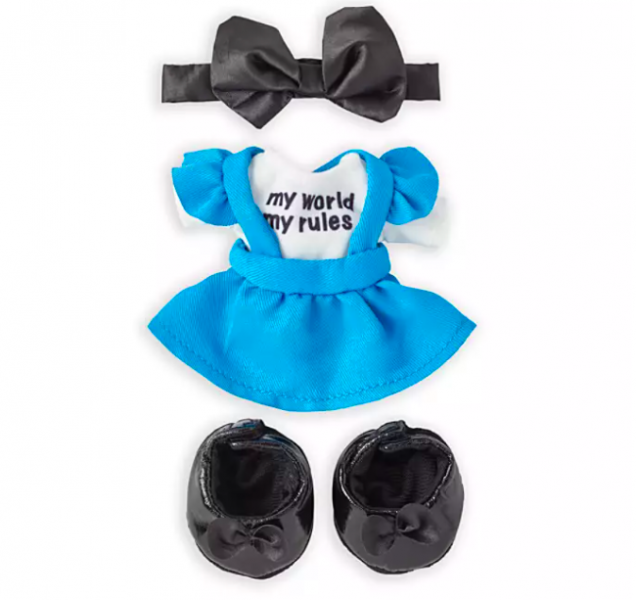 Her classic black bow and shoes are obviously included, and her shirt reads “my world my rules.” Sounds like Alice is dreaming up a new adventure with Tweedle Dee and Tweedle Dum!