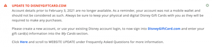 But what does this mean for you? You can still log in to the website with your Disney account username and password, but any gift cards you previously had connected to your account are now gone.
