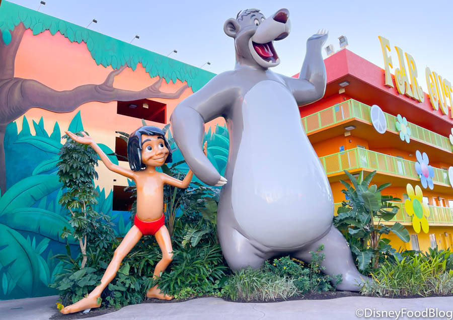 The Jungle Book came out in 1967 so you know Mowgli and Baloo are rocking it up in the 1960s section. This is also the spot that features the main pool at this resort with the Hippy Dippy Pool. The other pools include the Bowling Pool in the ’50s section and the Computer Pool and the ’80s and ’90s area.