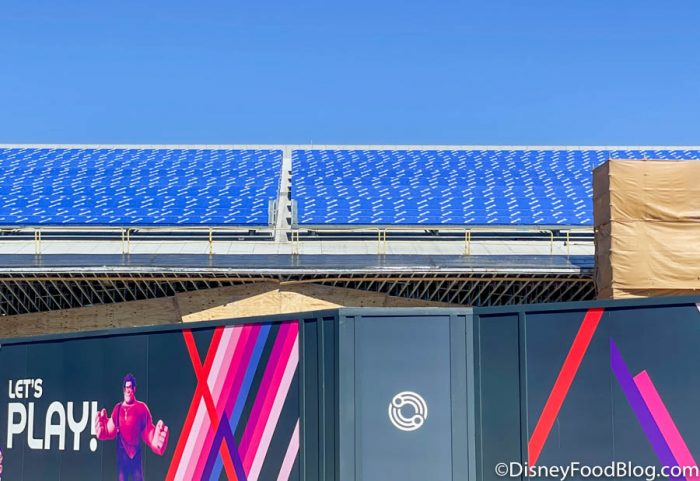And, when you step back a little, you’ll notice that the panels we saw being installed on the roof are now looking blue (in a good way)! These panels can be spotted in the original concept art for the ride so it’s exciting to see it coming together!