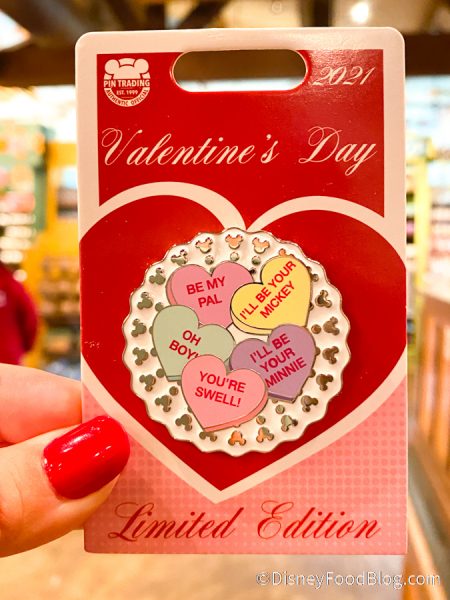 There’s also a special new 2021 Valentine’s Day Pin. It’s got messenger hearts on it. This pin is $19.99.