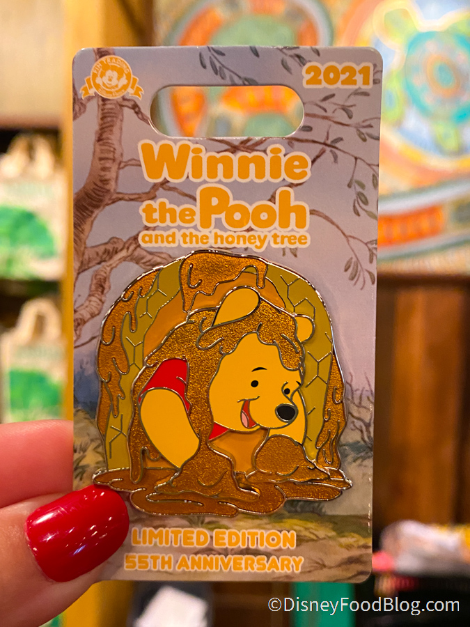 We found LOADS of new pins at Riverside Depot! This Winnie The Pooh Pin has Pooh Bear covered in his favorite snack — honey! This pin is $19.99.