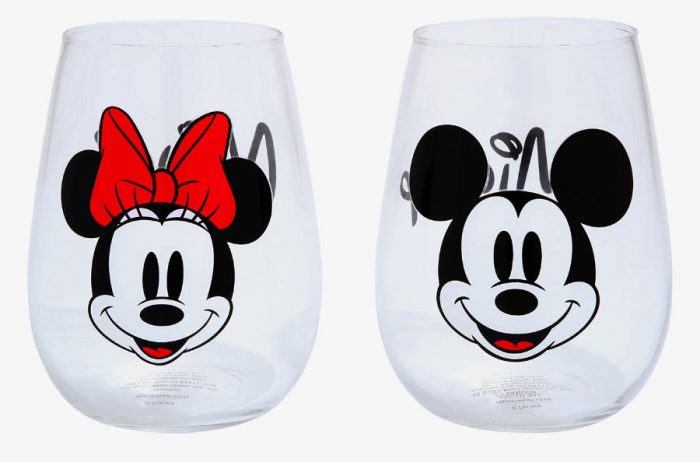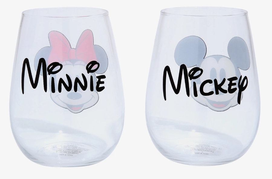 And we found the PERFECT Disney wine glasses online! The Mickey and Minnie Mouse Wine Glass Set from BoxLunch has Mickey on one glass and Minnie on the other!