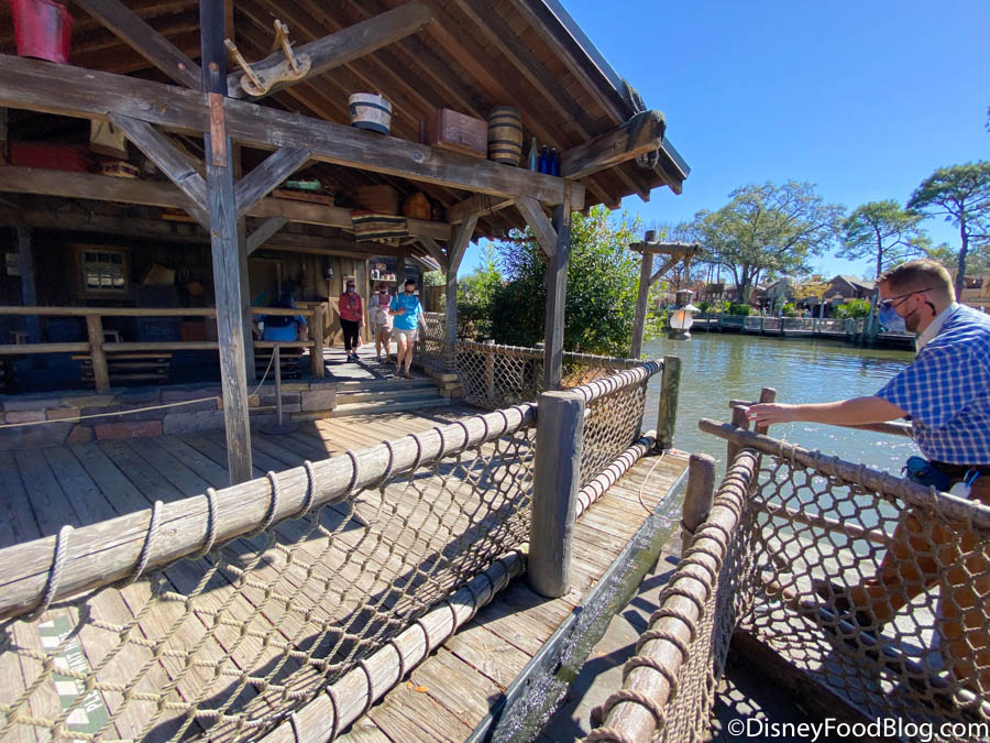 There was a line to board the rafts to Tom Sawyer Island, but social distancing markers were in place to keep guests 6 feet apart.