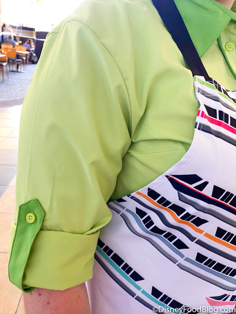 At Contempo Cafe at Disney’s Contemporary Resort, the costumes have gone from bland to busy. Gone are the tan aprons and caps…say hello to MONORAILS!
