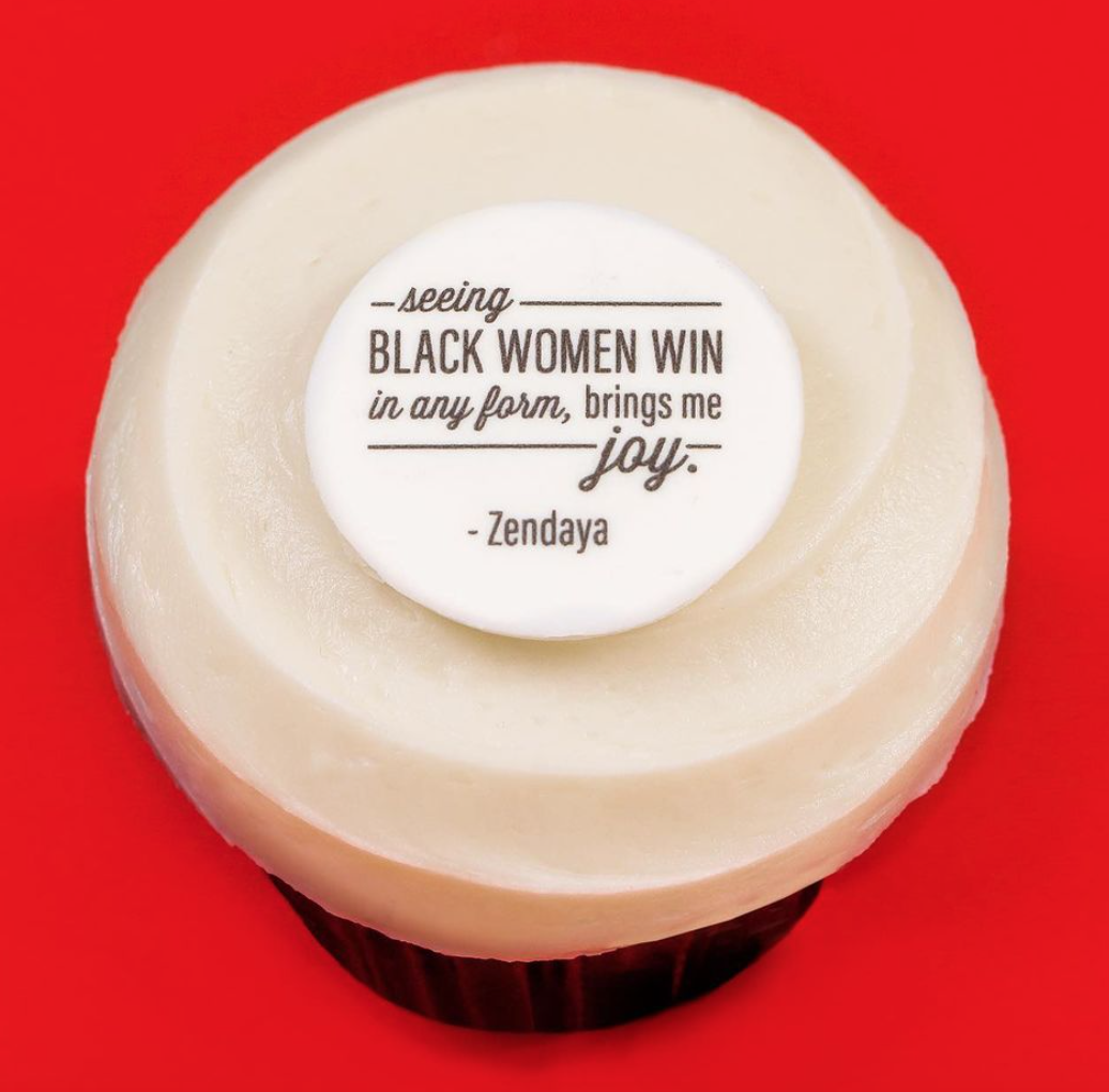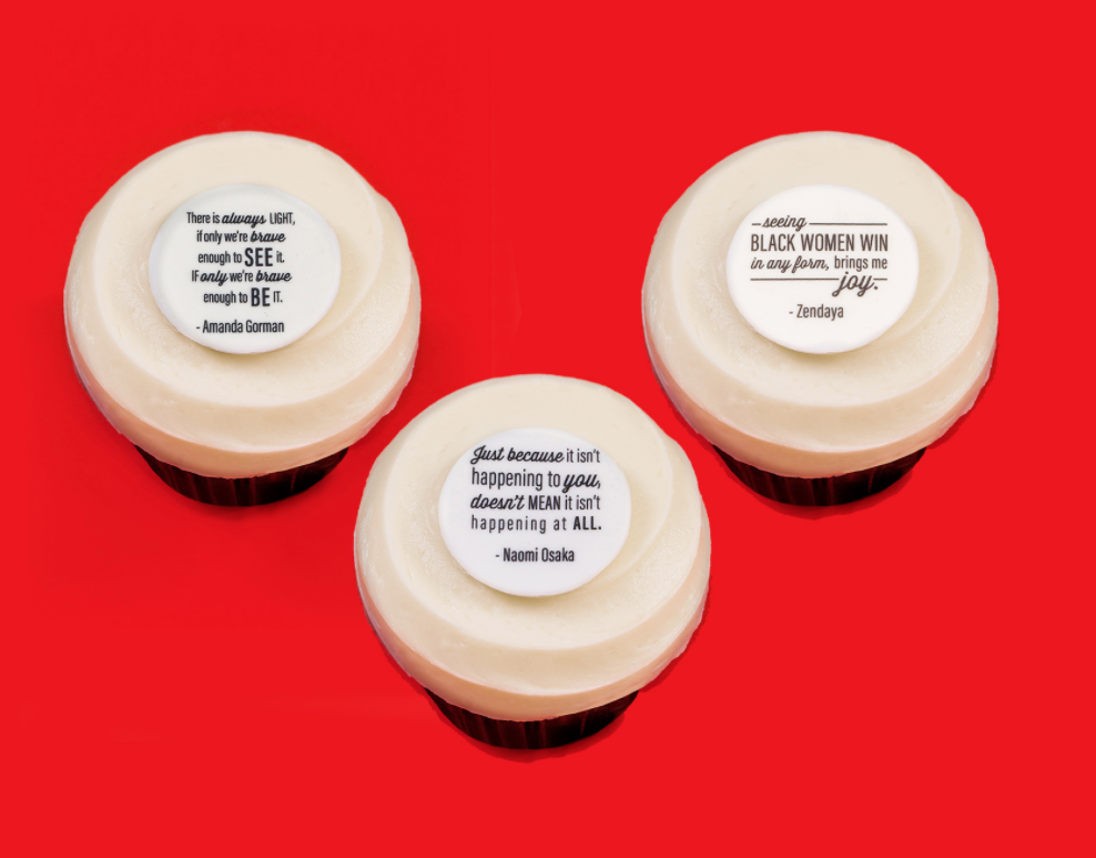 In honor of Black History Month this February, Sprinkles will be releasing three cupcake designs to recognize Black trailblazers of our generation! Each cupcake is classic red velvet, and will be topped with one of three quotes.