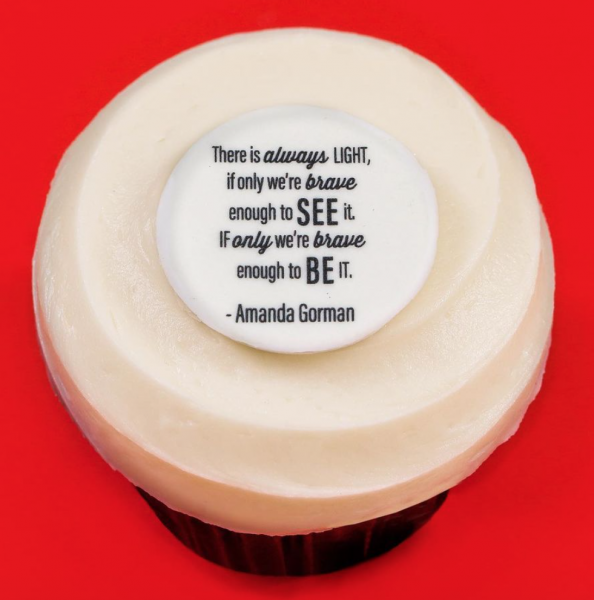 Amanda Gorman will have her quote “There is always light, if only we’re brave enough to see it, if only we’re brave enough to be it” featured on the cupcake from February 1st through February 10th.