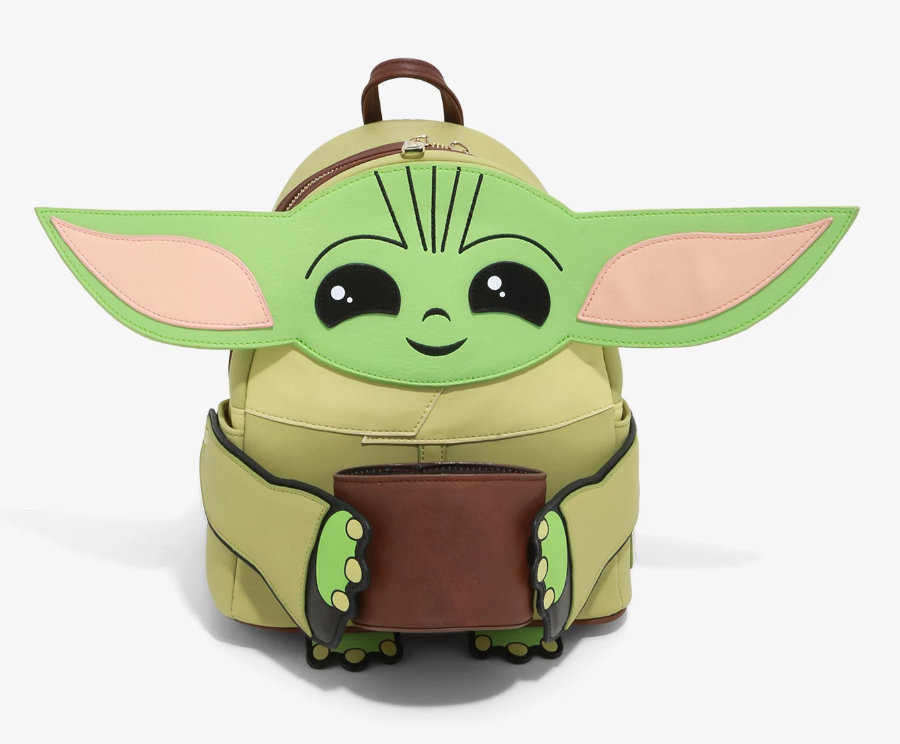 The Loungefly The Child with Cup Figural Mini Backpack is simply charming! He’s holding his little cuppy-cup and everything, and it’s even removable!!!