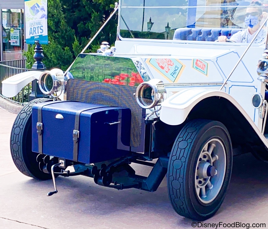 Where would a person even buy mickey mouse tires? Great attention to detail, but it was kinda wasted on us. We saw this car go by when we were at Epcot in the countries. It was morning and we had just arrived by skyliner. It went by too fast to notice tire tread.