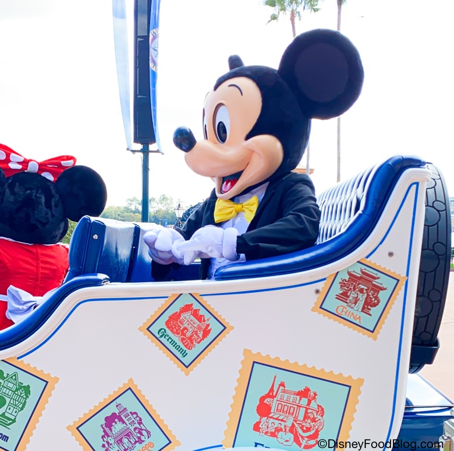 Now we’ve spotted one of our favorite Mickey details EVER, in a blink-and-you’ll-miss-it moment during an EPCOT Character Cavalcade!