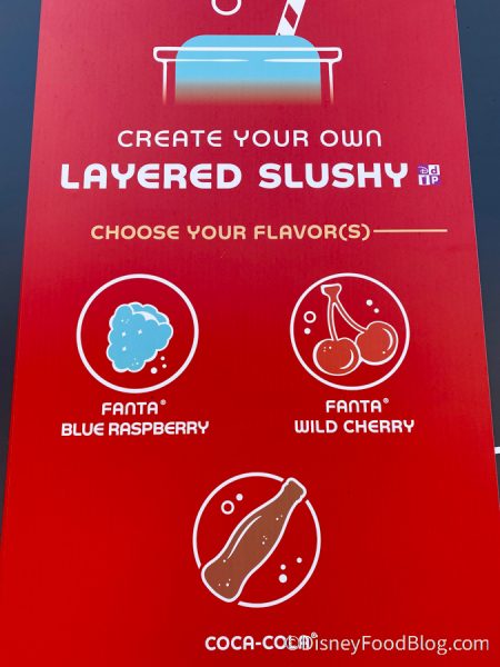 You have a choice of three slushy beverages to start with: Fanta Blueberry, Fanta Wild Cherry, and Coca-Cola.