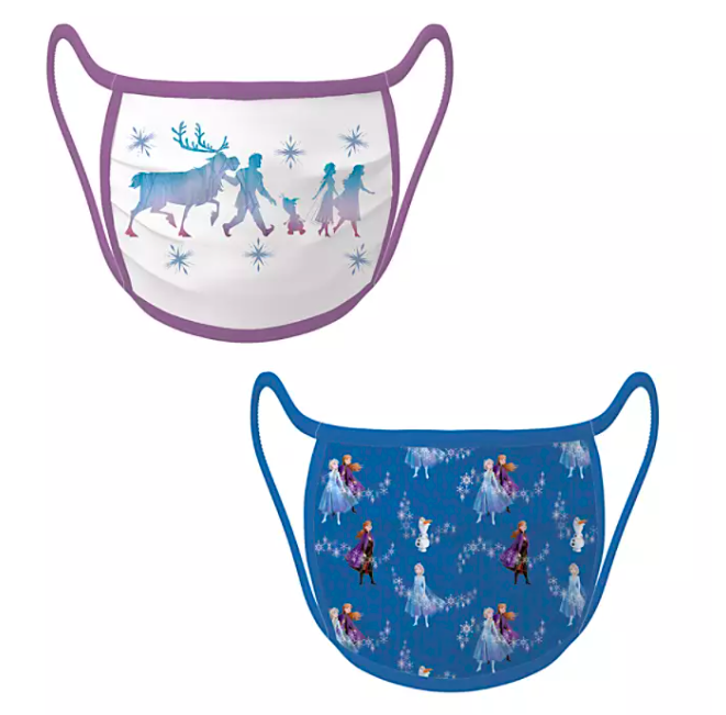 Now, here’s where we start feeling the deja-vu. There’s also a set of two masks inspired by two of Disney’s favorite sisters. Silhouettes of Anna, Elsa, Olaf, Sven, and Kristoff stride across one of the Frozen face masks, while the other features a pattern of the sisters and Olaf. We’ve seen quite a few Frozen-inspired masks before. Did Disney’s other princesses get the cold shoulder?