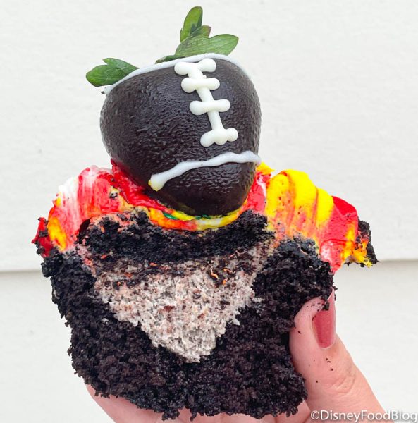 Besides the toppings, this cupcake was the same as the Chiefs one which means it sure was tasty! We have to say that all of these treats were very cute and perfect for today. Most folks would like these as long as they like chocolate!