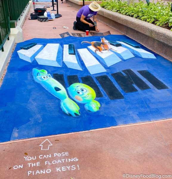 As usual, we’re checking in on the new Chalk Art for the EPCOT International Festival of the Arts. Check out this larger-than-life Soul piece.