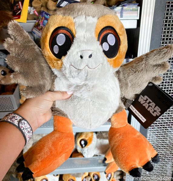 At Mission SPACE Cargo Bay we found this ADORABLE Big Feet Porg Plush for $26.99.
