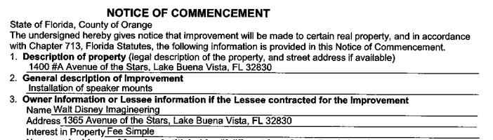 Today, we spotted that Disney has filed a permit for the “Installation of speaker mounts” at the address coded to the former home of Pin Central. That’s RIGHT in the middle of what will soon be World Celebration!