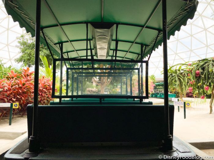 This slow-moving ride can seat several rows of people per boat. Every guest will get a chance to see most of the scenes while the boat is traveling through each section. That said, the front row will get to see the plants, films, and scenes first without looking through several rows of people. Sit towards the outside of the boat if you want to see things up-close!