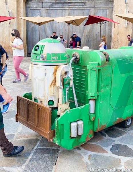 And in Galaxy’s Edge, we spotted the Droid Sprite Cart making his rounds with the assistance of a Cast Member.