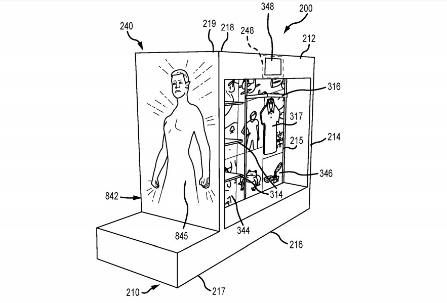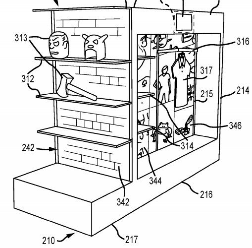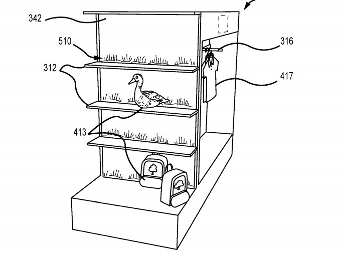 In seriousness, it’s unlikely that the mock-up products illustrated in the patent have anything to do with what these displays will be selling in real life. But, it sure is funny that the tech illustrators just tossed a duck and an ax on the shelves.
