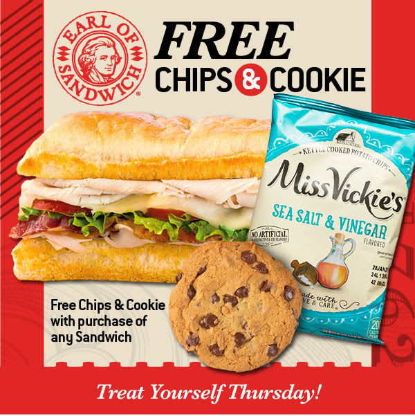 If you get emails from this chain, you can get FREE chips and a cookie with the purchase of ANY sandwich on Thursdays through February 25th, 2021! We confirmed via phone that both the Disney Springs location and the Downtown Disney locations WILL be participating!