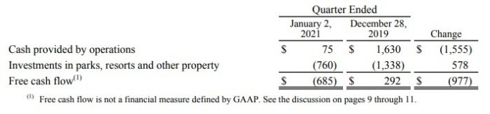 On the other side of the segment, Disney also spent significantly less money on the theme parks this quarter. There was an approximate 43% drop in investments in parks, resorts, and other property from last year.