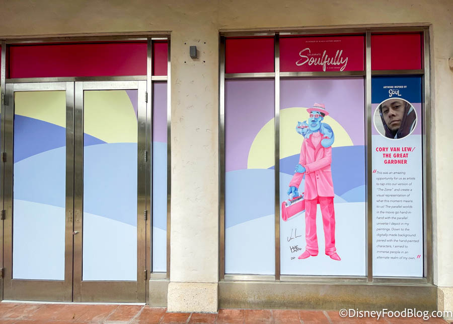 New art pieces can be seen throughout Disney Springs! This piece by artist Bee Harris shows off some of the women from the movie Soul!