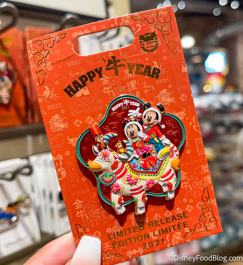 We also noticed this limited-edition pin, featuring Minnie and Mickey ringing in the Year of the Ox!