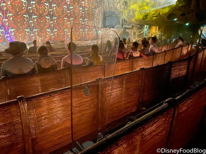 LOTS of the ride was spent in near TOTAL darkness while water effects, sounds, and other interactive elements from the show were put into play, making you feel like Stitch was walking around, spitting, and oh yeah, burping near you (yuck). Let’s just say that if you didn’t really know what this ride was getting you into, you could be in for quite a few tears from your kiddo afterward.