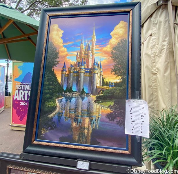 If you love hunting for hidden Mickeys and other tiny Disney details, then you’re going to LOVE this piece of art. The artwork is titled Magical Reflection and was created by artist Greg McCullough.