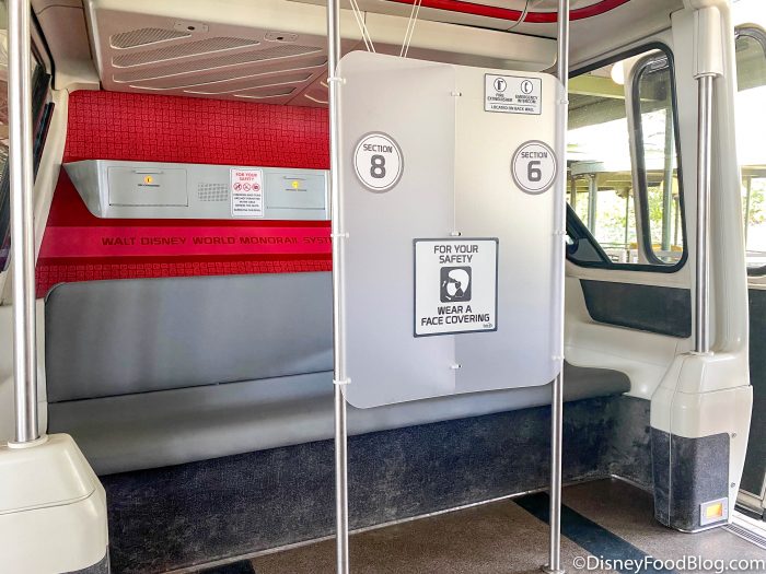 There were also distancing barriers in the rows, just like we’ve seen on some of the other monorails. The seating on the monorail is also now silver/gray in color.