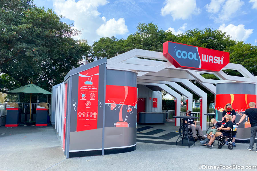 Cool Wash is a seasonal spot that offers create-your-own slushies. We recently discovered that it was open again, after being closed for some time. At the time, we were told it would be open through the end of the existing EPCOT Festival of the Arts, which ends on February 22nd.