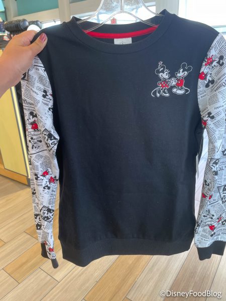 We’ve seen some of the Newspaper Mickey and Minnie Collection in Disney World, but now two more items have made their way from Downtown Disney to Disney Springs! There’s the Newspaper Sweatshirt for $49.99…