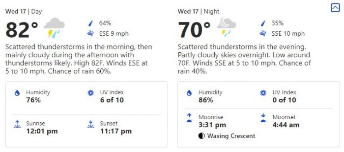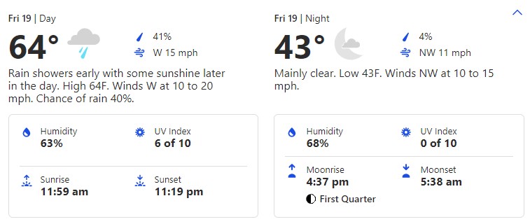 Here, we’re looking at a 65-degree high and a 45-degree low.