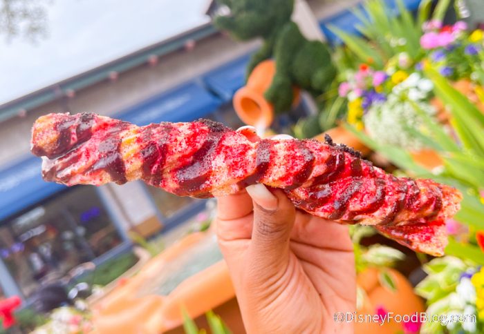 This one is a Chocolate-Covered Strawberry Churro, and has pink and red sprinkles with strawberry and chocolate icing. And if that doesn’t scream Valentine’s Day, nothing does! And you know what? We were surprised because we totally got that chocolate and strawberry vibe.