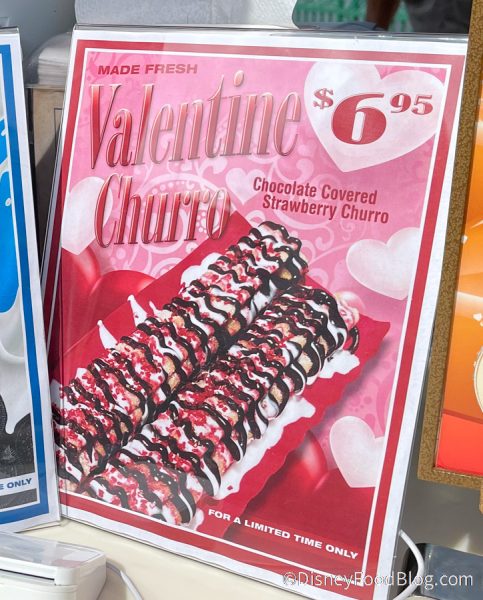Because now it’s time to try a Valentine’s Day <insert drumroll here> churro! So we headed over to Sunshine Churros at Disney Springs to check out its Valentine Churro.