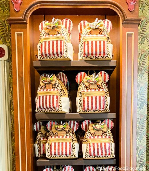 Which is HUGE news, because it seemed that these Loungeflys were gone. With red and white stripes inspired by the Jungle Cruise boat awnings, and an animal print pattern, it’s quite the statement bag! One that says, “I’m qualified to be a Skipper,” perhaps?