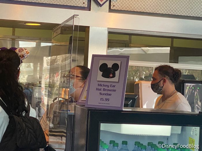 Mickey Ear Hats are all over the place in Magic Kingdom! At Auntie Gravity’s in Tomorrowland, you can get a Brownie Sundae for $15.99.