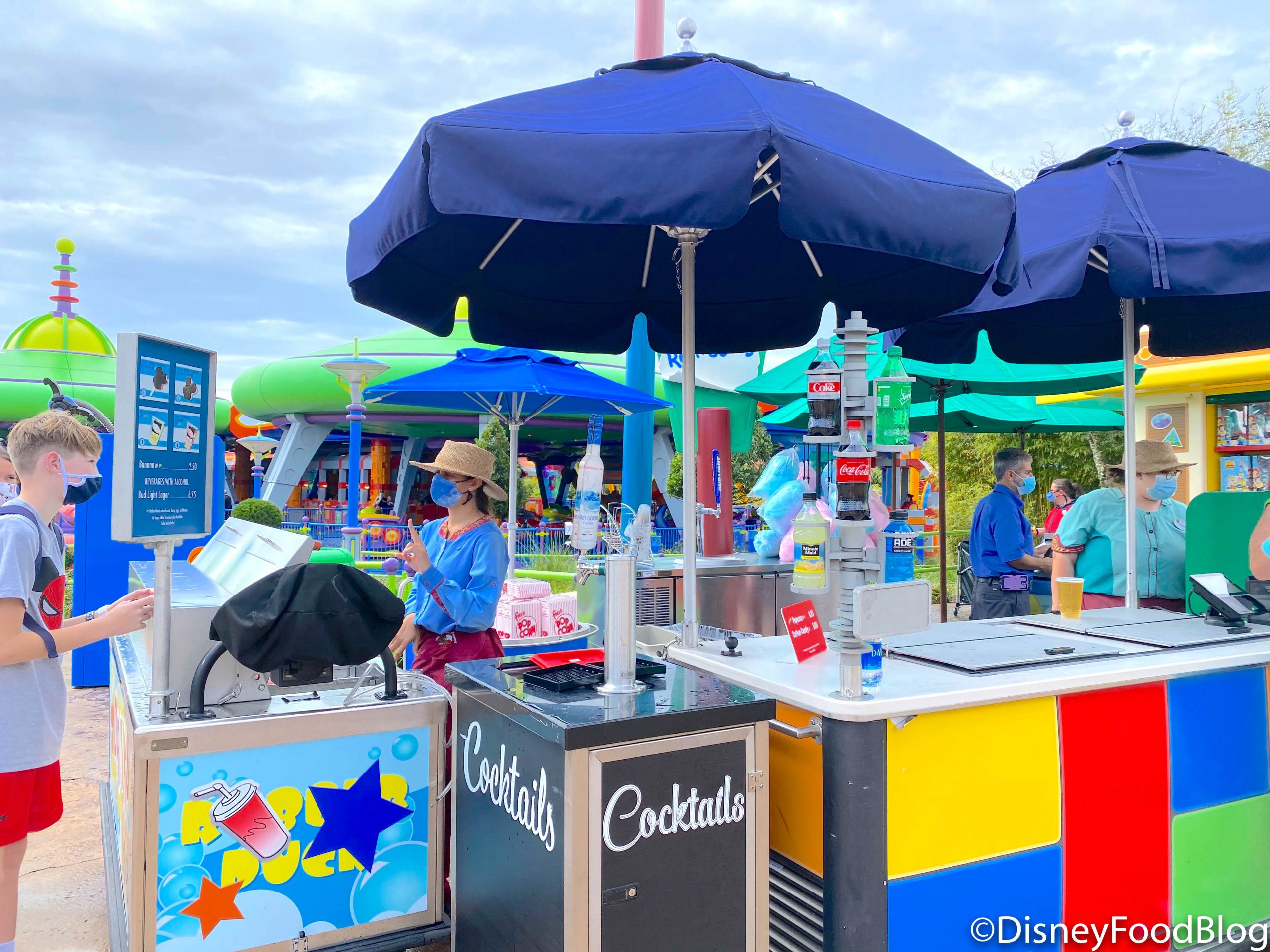 As you make your way to Slinky Dog Dash or boast about your high scores on Toy Story Mania, you can always stop by the Toy Story Land Beverage Cart for a quick drink in the area! Recently, the kiosk has been serving up Grey Goose Cosmopolitans for $13 and Margaritas for $12 on tap.