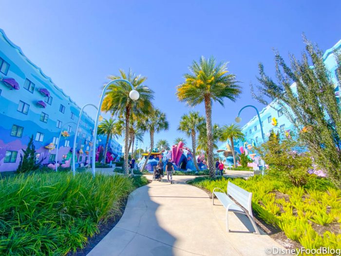 Following the ongoing overhaul of the Big Blue Pool, next up are the giant character pages along the entrance! That’s right: this Disney World hotel is getting a facelift.