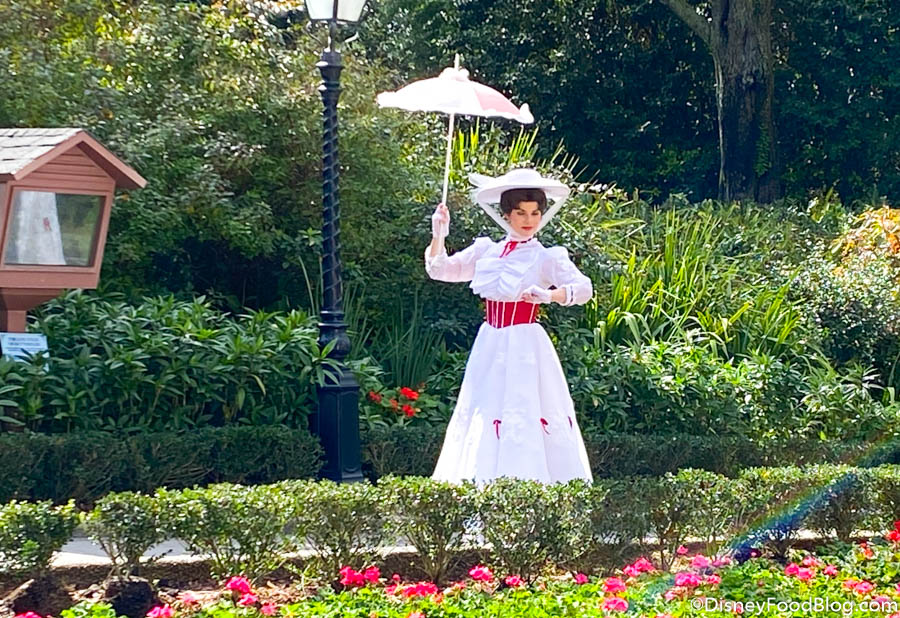 Currently, EPCOT has several pop-up character meet and greets that you can find around the park. (Socially distanced, of course!) You’ll see Winnie the Pooh and Joy in the grassy area near the Imagination Pavilion, and you may spot Alice or Mary Poppins in the U.K.